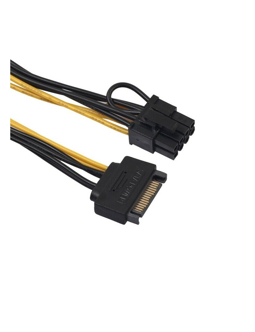 Brand new and high quality. Many power supplys in new computers have only SATA power connectors for drives. This 8 inch converter cable allows you to plug into a Video (VGA) Card the requires a 6+2 Pin 8 Pin PCI Express connector. Allows SATA Plugs to connect into the 6+2 Pin 8 Pin power socket on a PCI-E graphics card when you do not already have a PCI-E Capable power supply. Make sure your power supply has enough wattage to support the video card that you want to use! Cable length: 20cm around Inputs: 1x SATA Male Power Connectors Outputs: 1x PCI Express 6+2 Pin 8 Pin Female Power Connector