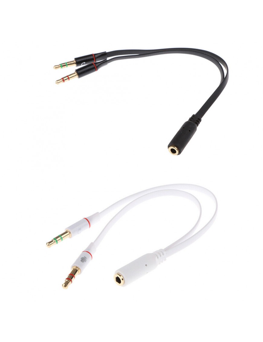 2x 3.5mm Audio Mic Splitter Y-Cable Headphone Adapter 1 Female Jack To 2 Male