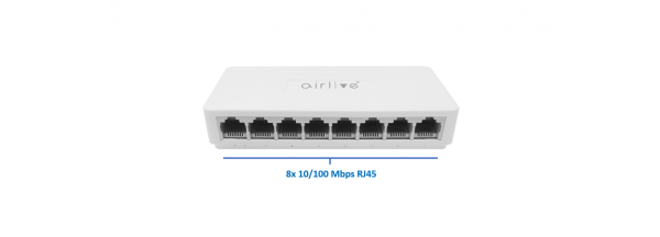 8 x 10/100Mbps RJ45 Ports: Supports Auto MDI/MDI-X, allowing easy connectivity without the need for crossover cables.