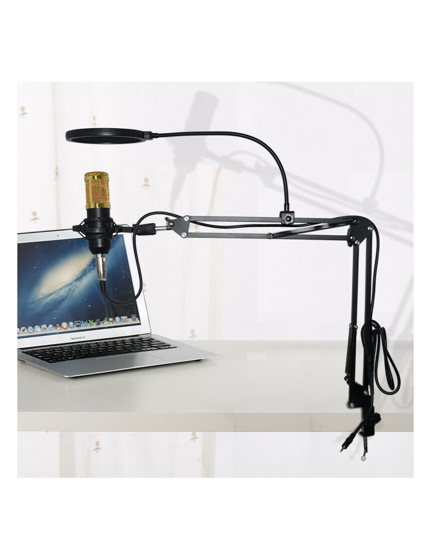 - Scissor arm Desktop Microphone Stand & Mic Boom Filter & shock-proof mount.