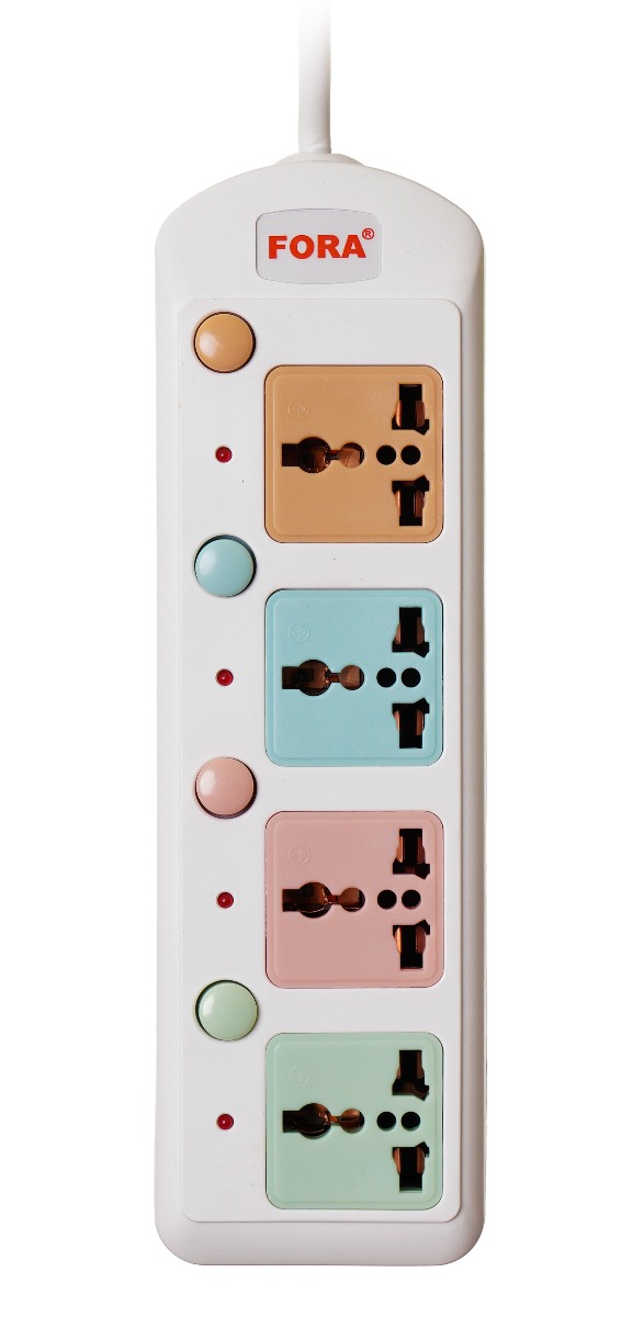 Power Strip FORA 604 4 Port With 4 Keys – 10 Amps -3 Meters