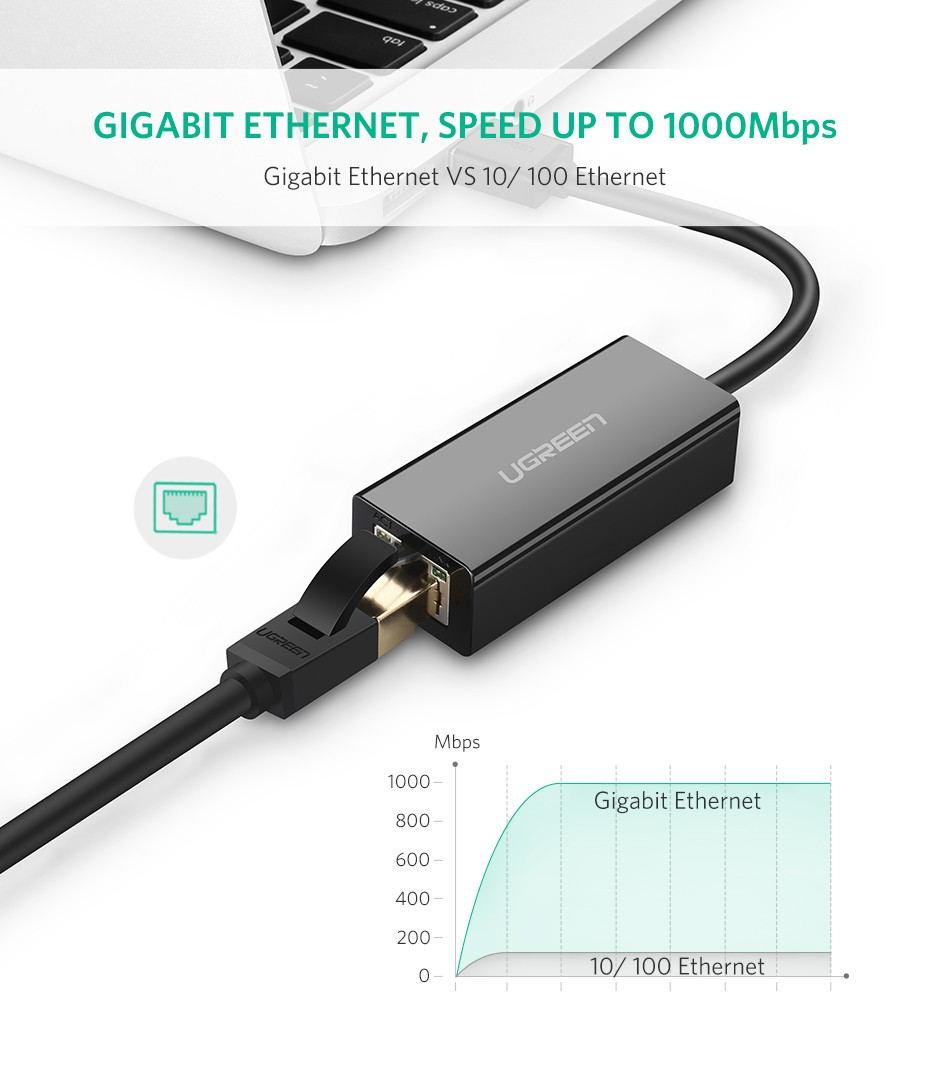 Ugreen usb 2.0 to RJ45 Network Adapter connects your computer or tablet to a router,modem or network switch for network connection. USB 2.0 Ethernet Adapter is a good solution for adding a standard RJ45 port to your Ultrabook, notebook, or Macbook Air for file transferring, video conferencing, gaming, and HD video streaming. Full 10/100 Mbps fast Ethernet performance over USB 2.0’s 480 Mbps bus, faster and more reliable than most wireless connections. Link and Activity LEDs. USB powered, no external power required. USB to ethernet supports Wake-on-Lan (WoL), Full-Duplex (FDX) and Half-Duplex (HDX) Ethernet, Crossover Detection, Backpressure Routing, Auto-Correction (Auto MDIX). Support IPv4/IPv6 protocols and 10BASE-T and 100BASE-TX networks. Nintendo Switch, Wii and Wii U supported, widely compatible with Windows 10/8.1/8/7/Vista/XP, Mac OSX 10.6/10.7/10.8/10.9/10.10/10.11/10.12, Linux kernel 3.x/2.6, and Chrome OS. Does not support Windows RT, Android.